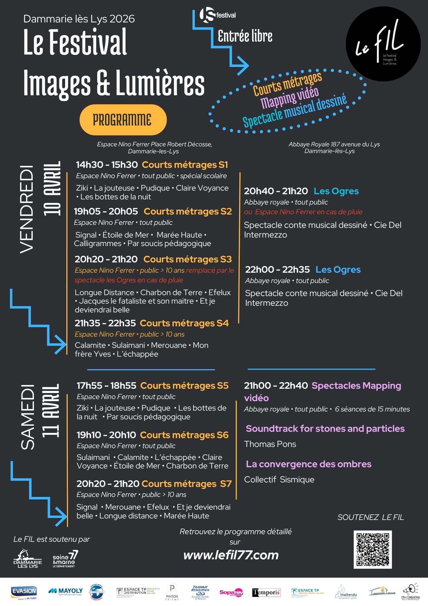 En 2026, Le FIL propose à Dammarie Les Lys plusieurs spectacles de projection vidéo sur l’Abbaye Royale et le festival de courts métrages à l‘Espace Nino Ferrer.